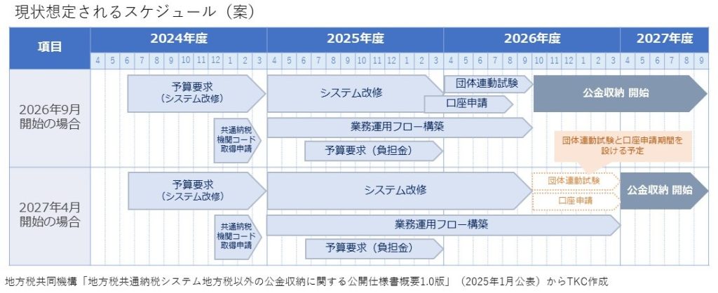なお、重点的に要請するとされた上記2つの公金については、2026年9月からの運用開始を目指して導入検討を行うことが求められていますが、年度途中からの運用変更は混乱も想定されるため、自治体によっては2027年4月から本格的な対応を予定するというところもあるようです。