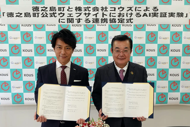 徳之島町、コウズと公式ウェブサイトにおけるAI実証実験に関する連携協定を締結[ニュース]