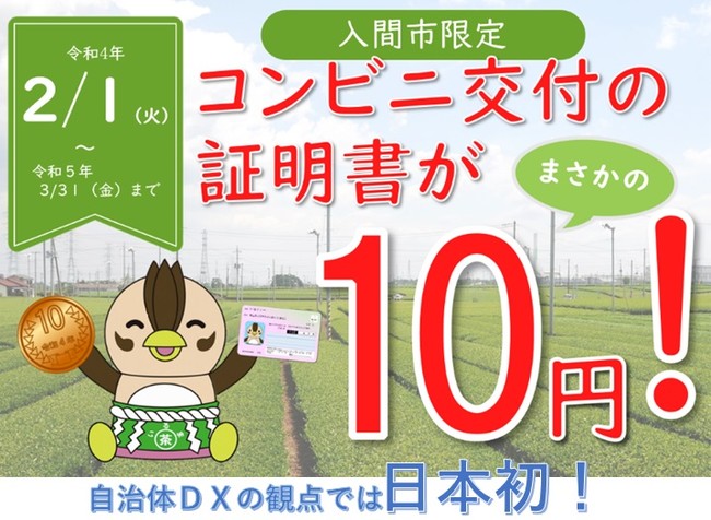 埼玉県入間市は令和4年2月1日から令和5年3月31日まで、証明書のコンビニ交付を一律10円とすることに決定した。