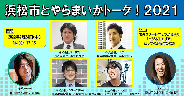 【2/24開催】浜松市外スタートアップも後押し!「第3回浜松市とやらまいかトーク!2021」Vol.3 〜市外スタートアップから見た「ビジネスエリア」としての浜松市の魅力〜 [ニュース]