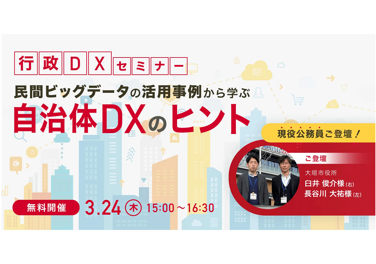 データソリューションサービスを提供しているヤフーは、3月24日(木)に行政DXをテーマとした自治体向けのオンラインセミナーを開催する。