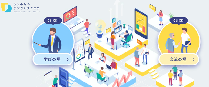 「うつのみやデジタルスクエア」(URL)は、「学びの場」「交流の場」に大きく分かれている。