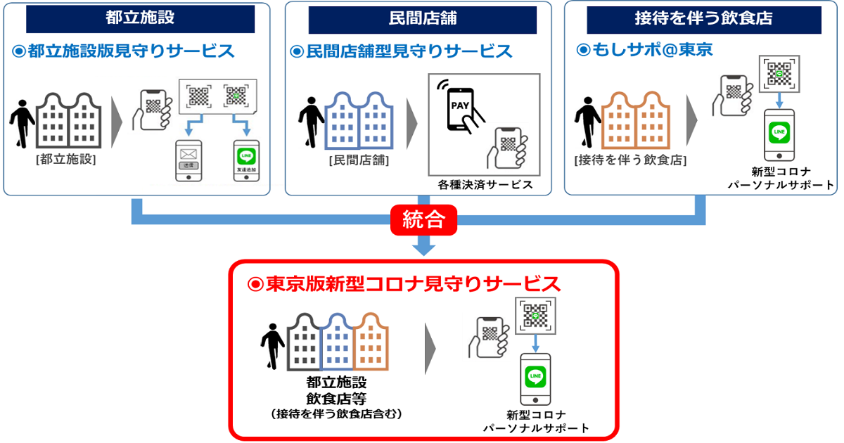 このたび、施設等の種別ごとに運用してきた各通知サービスを統合し、全ての施設等における利用方法を同一にするなど、都民に更に分かりやすい通知サービスとしてリニューアルした、新たな「東京版新型コロナ見守りサービス」の運用を開始する。