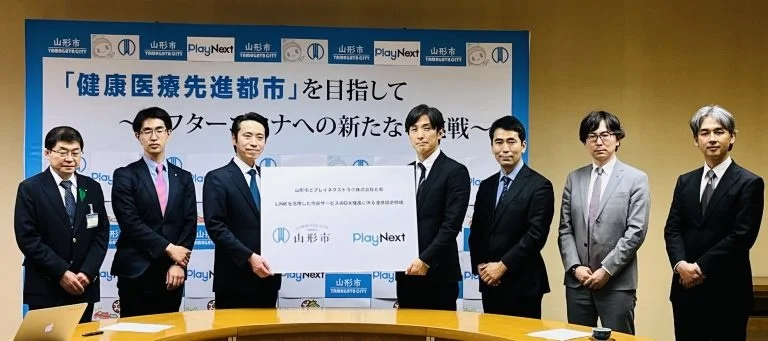 山形県山形市は、プレイネクストラボ株式会社と行政DXの推進を図るため連携協定を締結。「行かない、書かない、迷わない」市役所の実現を目指し、双方の保有する資産を最大限に活かしながら、LINEを活用したスマート公共ラボの開発や運営を通じて、行政DXのさらなる推進を図っていく。