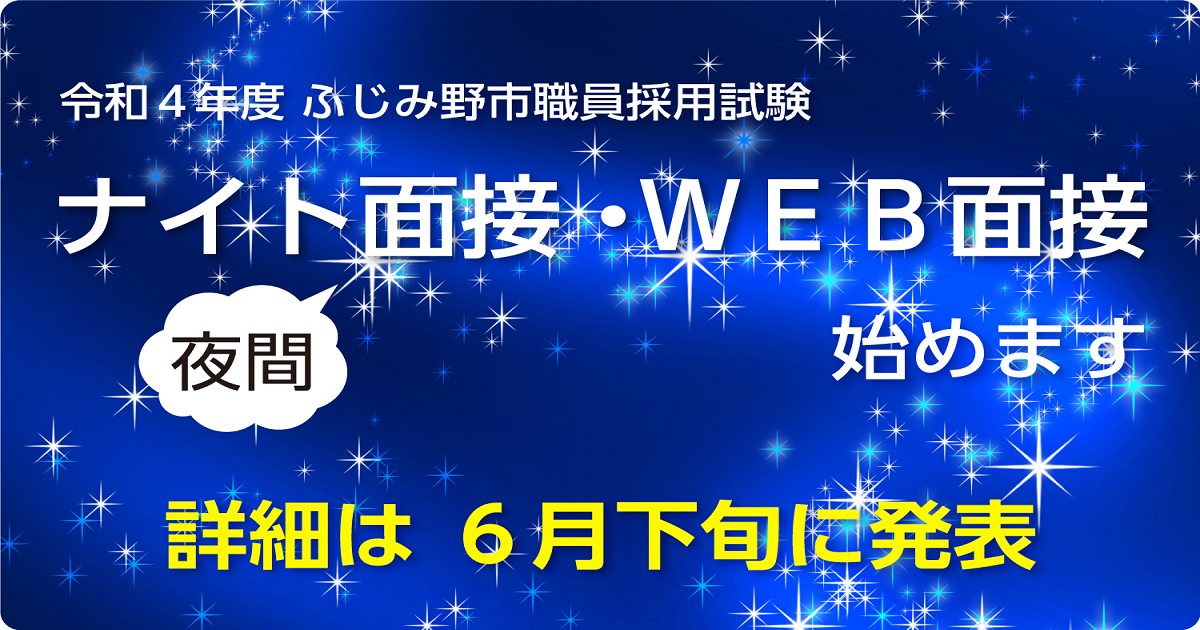 令和4年度のふじみ野市職員採用試験では、新型コロナウイルス感染症の影響で、学校生活などでさまざまな制限の中で過ごしてきた受験生を応援するため、ナイト(夜間)面接とWeb面接を併用する。