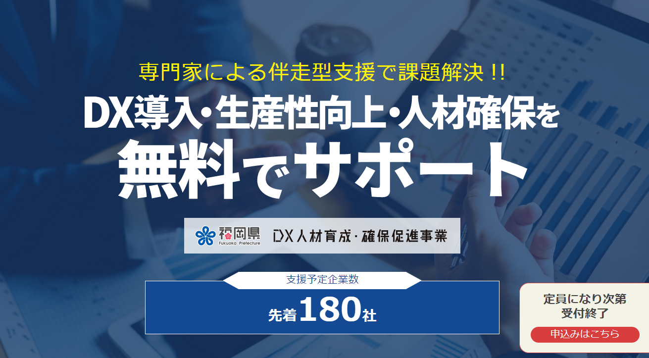 福岡県は「DX人材育成・確保促進事業」の一環として、専門家を派遣しDX導入・生産性向上・人材確保を無料でサポートする。