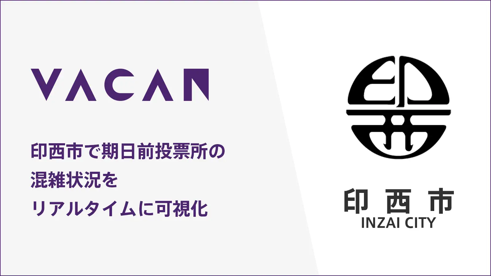 千葉県印西市は、参議院議員選挙に向けて、期日前投票所の混雑可視化サービスを導入する。配信は株式会社バカンが提供するリアルタイム空き情報配信プラットフォーム「VACAN(バカン)」を通じて行われ、アプリなどのダウンロードなしにインターネット上から確認ができる。なお千葉県での投票所への導入は初となる。