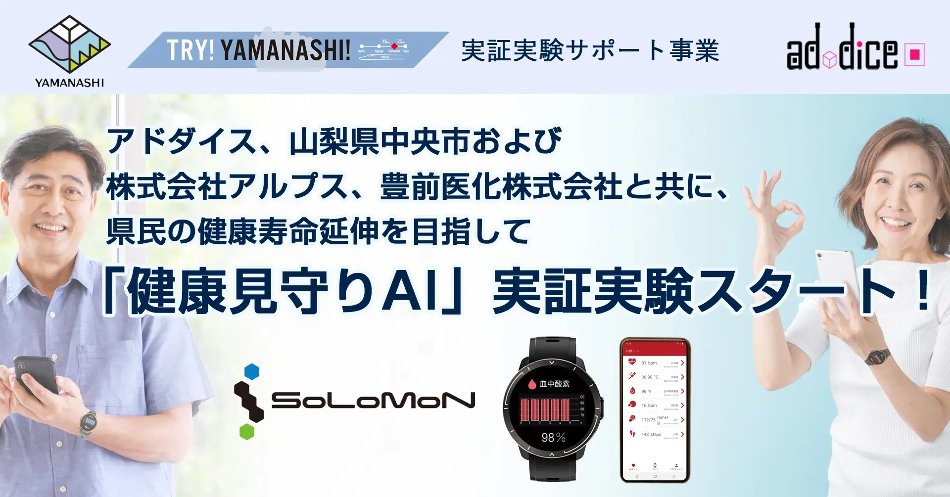 山梨県中央市は、株式会社アドダイスおよび株式会社アルプス、豊前医化株式会社と共に、「SoLoMoN Technology(以下:ソロモン・テクノロジー)」に基づく人工知能「ResQ AI(レスキューAI) 」を活用した健康見守りの実証実験を、2022年7月以降順次行う。