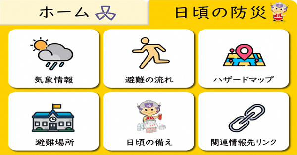 品川区では品川区公式LINEアカウントの防災メニューの充実を図り、「気象情報」「避難の流れ」「ハザードマップ」「避難場所」「日頃の備え」「関連情報先リンク」6つのメニューを追加した。さらに、チャットボット機能も搭載し、ほしい情報を効率的に取得することができる。