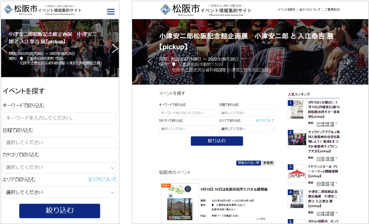 松阪市は、株式会社インフォモーションへの委託により、市内のイベント情報を集約し地域住民と観光客に届けることにより、地域活性化に貢献する「松阪市イベント情報集約サイト」を2022年9月15日(木)に開設した。