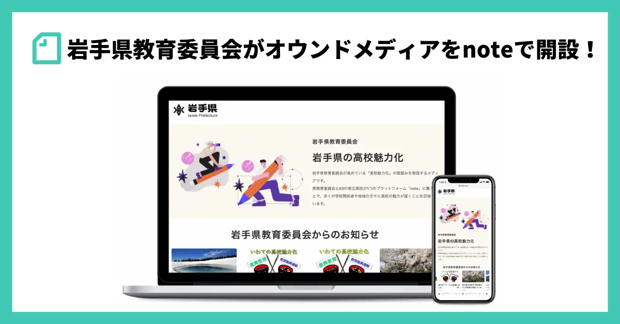 岩手県は、高校と地域が協働して魅力ある高校づくりに取り組む「いわて高校魅力化」を2020年から行っている。取り組みを通じ、生徒たちは正解のない課題に向き合い、地域の関係者と対話することで考えを深め、学校でのさらなる学びへとつなげている。このように生徒たちが探究的に学んでいく様子をより多くの人に分かりやすく発信するため、2022年2月にnoteと県教委は連携協定を締結した。本協定に基づき、2022年3月には全県立高校63校がnoteアカウントを開設。県教委は各学校の発信をまとめるオウンドメディアをnoteで構築した。