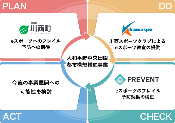 そこで今回の事業では、奈良県川西町にてジュニア世代からシニア世代まで運動機会を提供する川西スポーツクラブとPREVENTにより川西eスポーツコンソーシアムを形成し、eスポーツのシニア世代に対する身体的ならびに認知的フレイル予防効果、精神心理機能への変化を実証事業にて検証します。また本事業の中でPREVENTは事業評価を担当する。