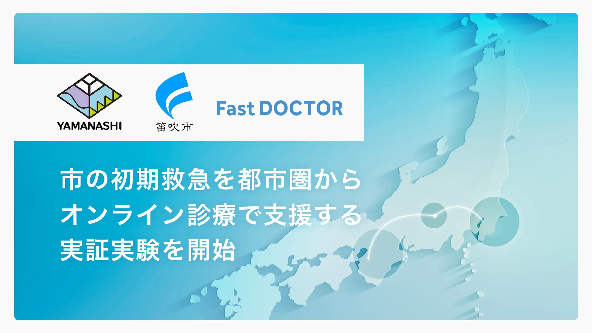 山梨県は、「第3期TRY!YAMANASHI!実証実験サポート事業」において、ファストドクター株式会社を採択した。県内の医師とファストドクターが連携することで初期救急医療体制の拡充を目指した実証実験事業に取り組む。本事業は2022年12月1日から2023年2月28日までの3ヶ月間、笛吹市内において実施する。