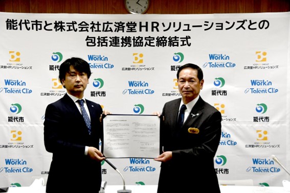 秋田県能代市は、広済堂グループの株式会社広済堂HRソリューションズと、2022年5月30日付で、相互の連携を強化し能代市内における人手不足対策・雇用創出についての地域課題解決を目的とする、地域活性化包括連携協定を締結した。