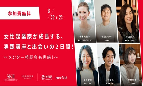 渋谷区は、meetalk株式会社とSK-II主催の「女性起業家支援プログラム」に協賛し、2022年6月22日(水)・23日(木)の2日間にわたってプログラムを開催する。