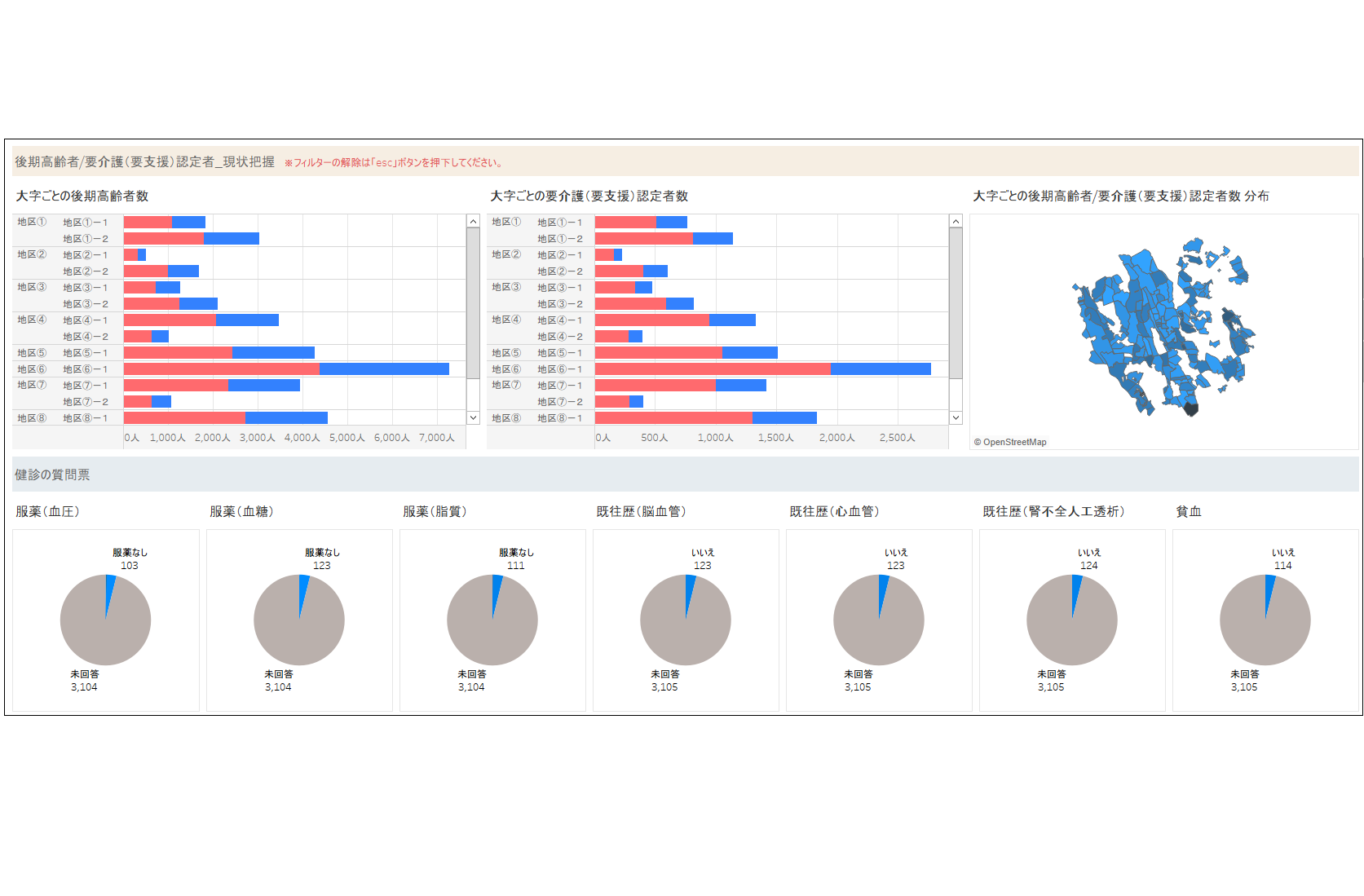 保健師の意見を取り入れ開発された、同ツールは、健診結果や医療レセプト情報などから、地区/行政区毎に医療費平均や疾病状況を分析することが出来る。また国勢調査などの地域プロファイリングデータと対比することにより、課題に応じた対象者の抽出をはじめ、保険者努力支援制度に基づく取り組みや、高齢者の保健事業と介護予防の一体的実施に向けた活用、保健事業の効果的な勧奨施策や新たな事業立案に活用することができる。