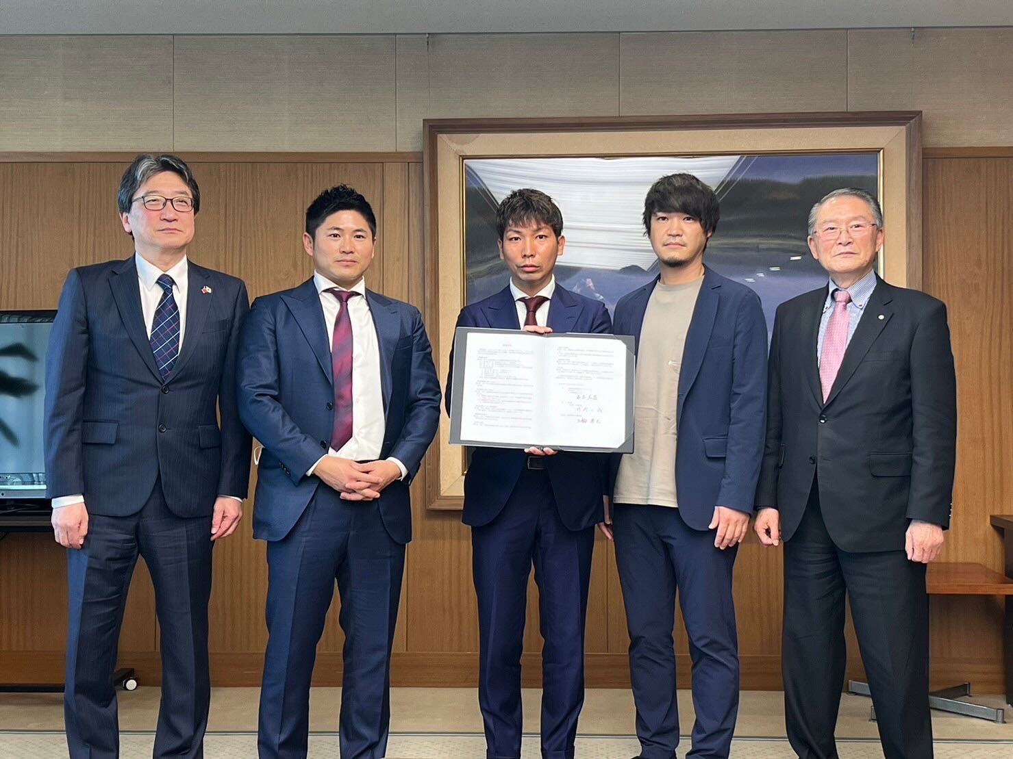 立地協定に伴い、両者は熊本県庁で立地調印式を開催。熊本県芦北町とビジネス連携包括協定を結ぶ株式会社MARUKUに立ち会ってもらい、立地協定を結んだ。