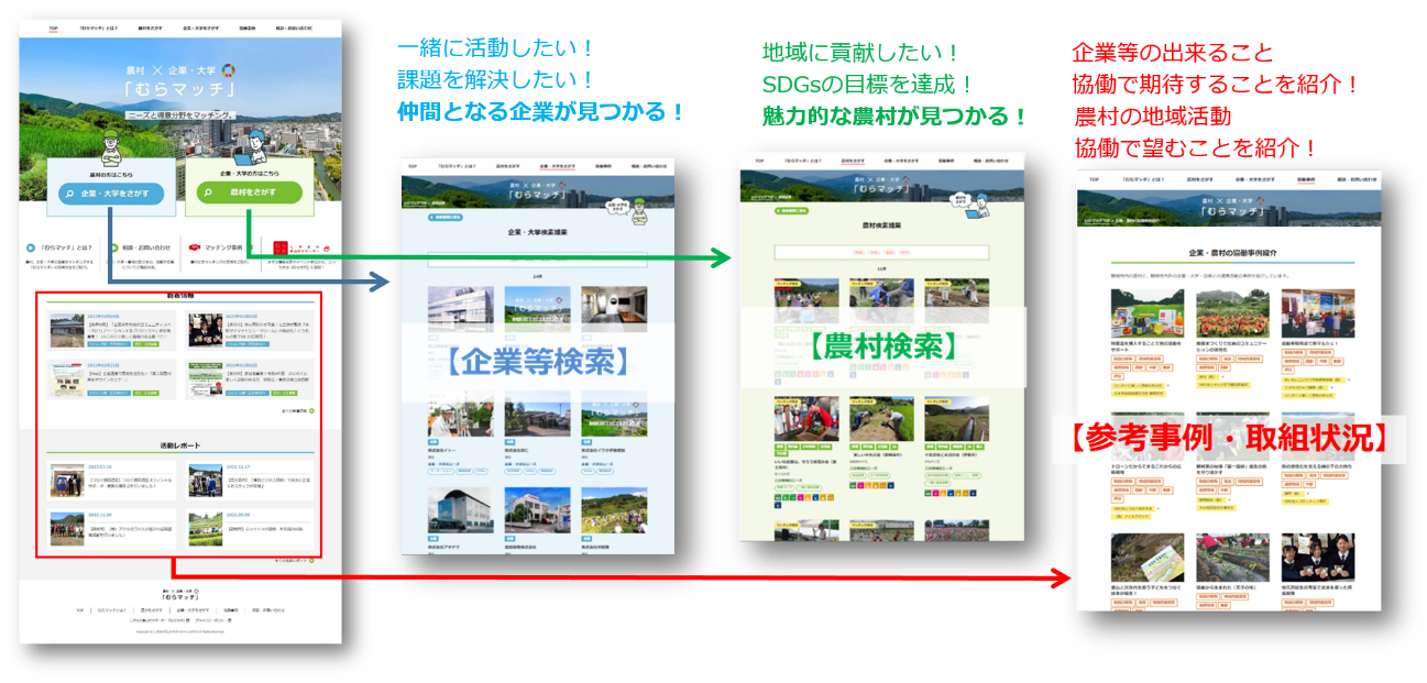 「むらマッチ」は農山村地域と企業をむすぶマッチング支援サイトで、令和5年4月3日から導入されている。サイトを通して両者の資源や人材・ネットワークを活用しながら、協働活動できる機会を創出する狙いだ。