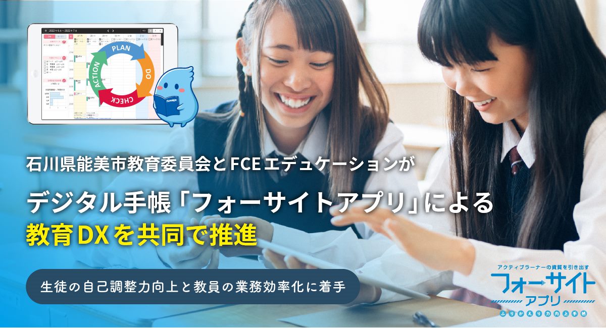 石川県能美市教育委員会は、株式会社FCEエデュケーションと連携し、中高生向けデジタル手帳である「フォーサイトアプリ」を活用した教育DXの共同推進を発表した。市内の中学校3校と小学校1校にて、タブレットを利用しデジタル手帳へ置き換えることで、コミュニケーションの促進や学習効果の向上を図る狙いだ。また、教員の業務効率改善を目指す。