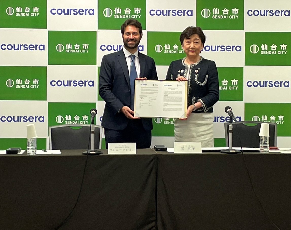 仙台市は2023年5月15日にCoursera, Inc.とMOU(Memorandum Of Understanding)を締結した。同社はオンライン学習プラットフォームCourseraを提供している企業である。MOU締結を通して「アントレプレナーシップ教育プログラム」を導入し、地域の若者に世界最先端の教育を提供する狙いだ。