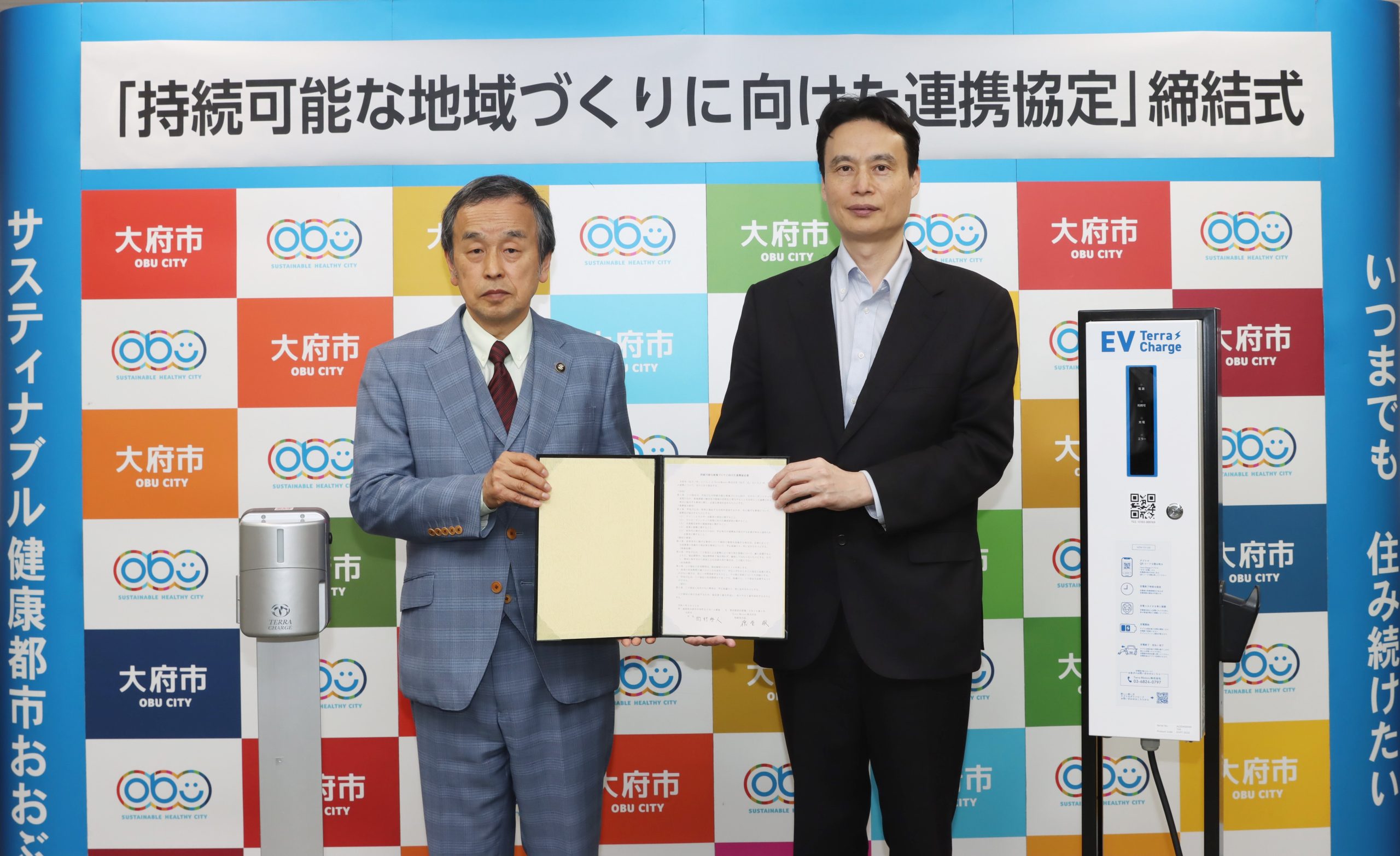 5月26日、愛知県大府市は、Terra Motors株式会社と「持続可能な地域づくりに向けた連携協定」を締結した。今後は、CO2排出量実質ゼロの実現を目指し、EV充電インフラの導入をはじめ、EVの利便性向上や持続可能なまちづくりに取り組む予定。