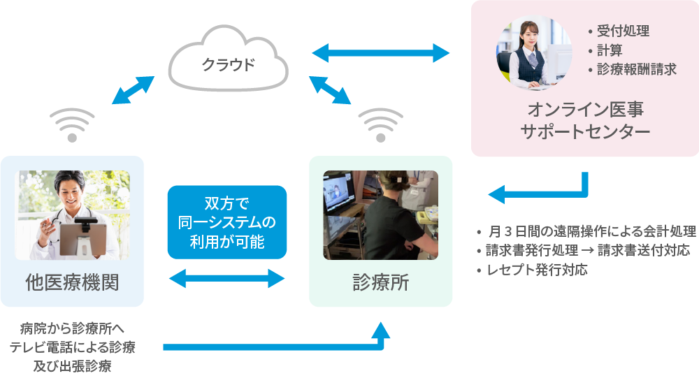 医療事務サポートセンターにいる経験豊富な医療事務担当者が会計作業を代行することで、請求の誤りを減らし、看護師の医療事務作業の削減を達成した。