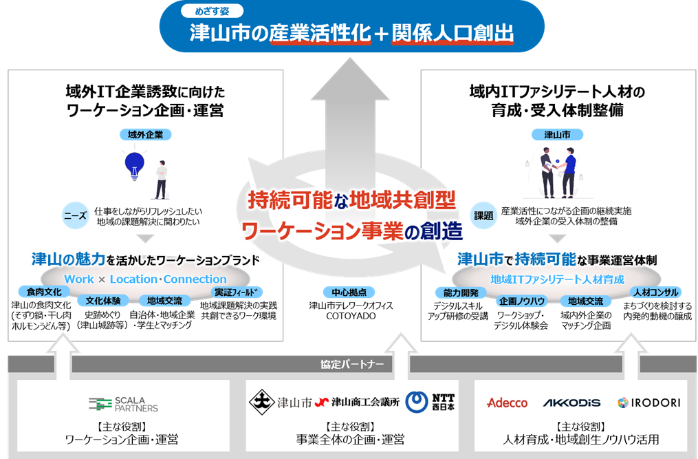 連携する各企業は各々の強みを活用し、津山の魅力を活用したワーケーションブランドを設立する。