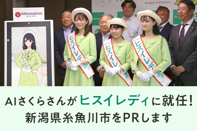 新潟県糸魚川市は、市の観光大使である「ヒスイレディ」に株式会社ティファナ・ドットコムが提供する対話型AIの「さくらさん」を見習いとして認定した。