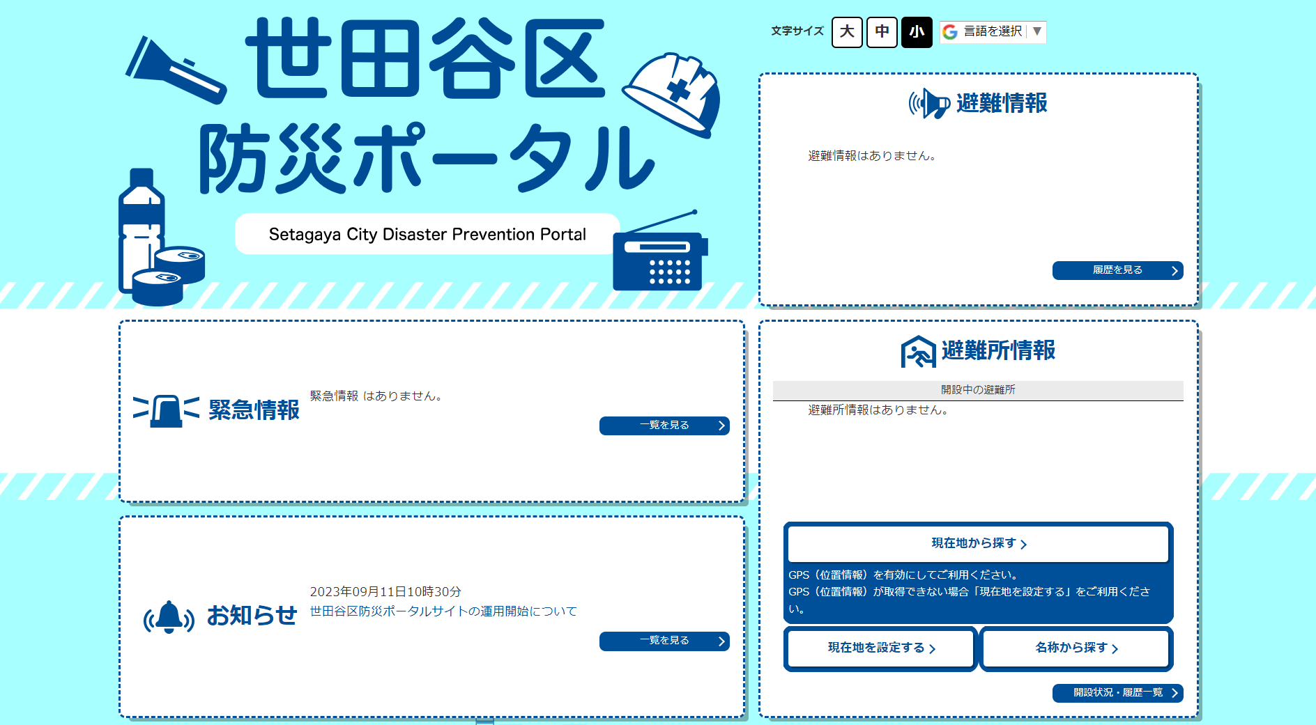 世田谷区は、災害時における「避難情報」、「避難所の開設情報」など様々な情報を確認することができる「世田谷区防災ポータルサイト」の運用を、令和5年9月11日から開始した。