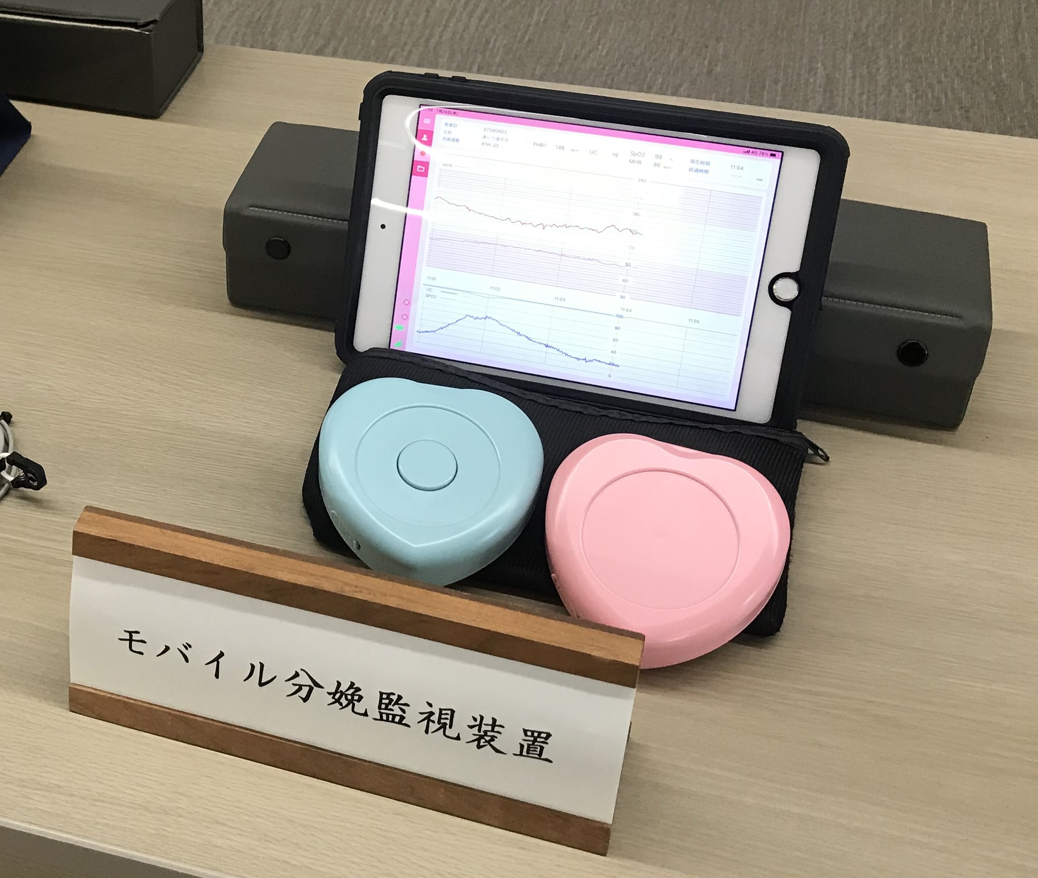 「モバイル分娩監視装置iCTG」は、メロディ・インターナショナル株式会社製の医療機器だ。妊娠中のお腹の張りと、胎児の心拍数や心音の確認ができる。計測されたデータはクラウドサーバーに送信され、タブレットやスマートフォンを利用して医師が母子の健康状態をいつでも診れる。