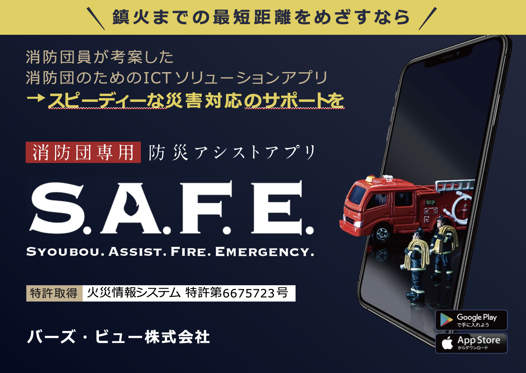 「消防団支援アプリS.A.F.E.」は、消防団のやり取りをスムーズにし、迅速で最適な行動の実現が期待できるアプリケーションだ。デジタル技術の活用で、消防団の活動強化・情報伝達迅速化・団員増加による、地域防災力の向上を目指し、実証を行う。