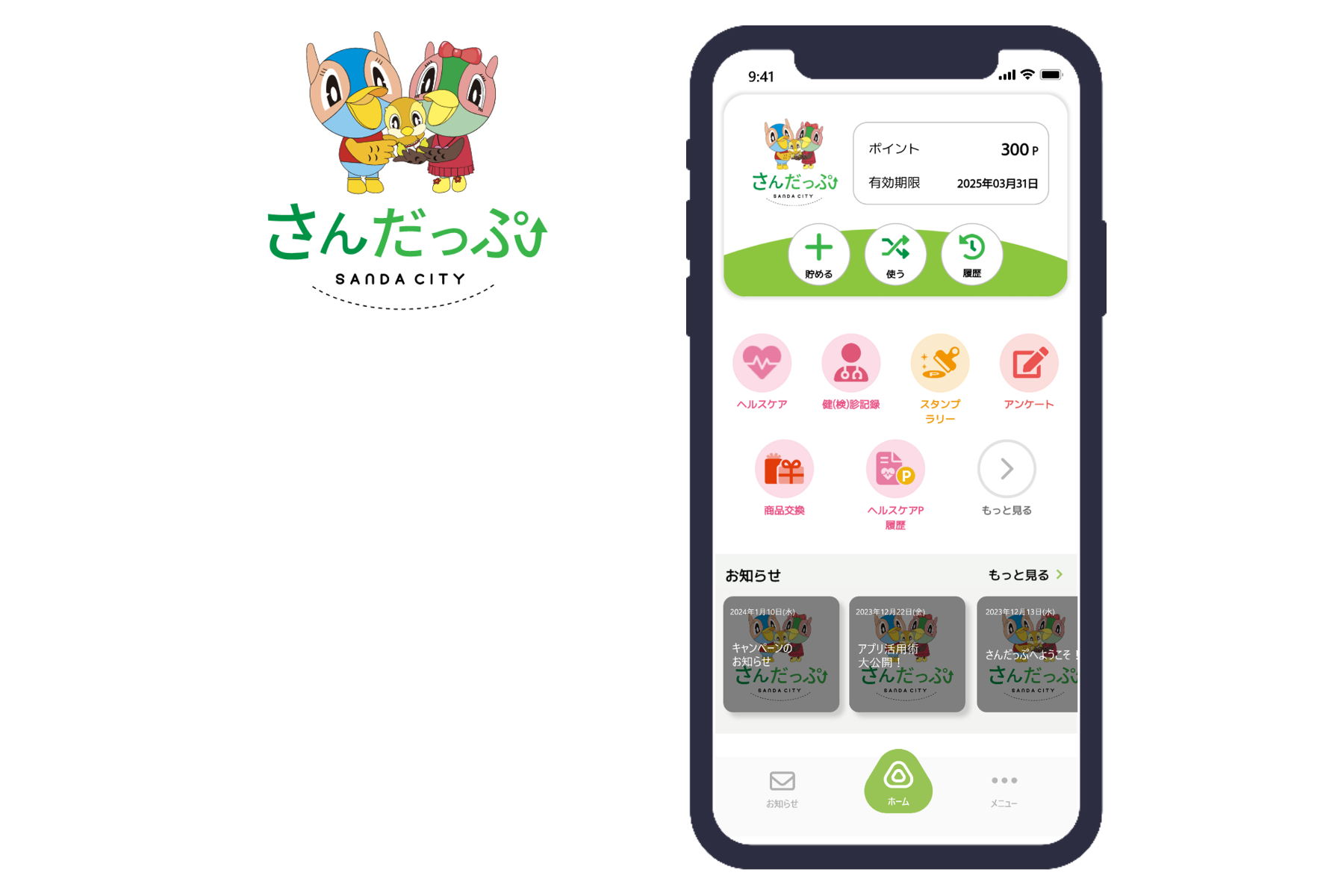 「さんだっぷ」は、一人ひとりの健康意識を向上する目的で2023年12月13日にリリースされた。当アプリでは、ウォーキングや健康診断などでポイントを貯められる。また、マイナンバーカードで認証をすることで、集めたポイントを電子マネーに交換可能。ポイントはアンケートに答えることでも得られる。