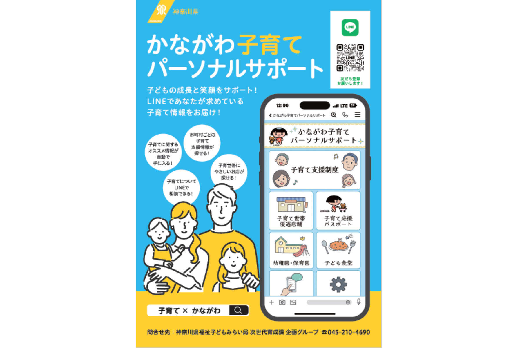 令和5年12月25日、神奈川県は、LINEを活用して子育て支援情報を発信する「かながわ子育てパーソナルサポート」を開始した。LINEでサービスの公式アカウントを友達登録することでサービスを受けられる。