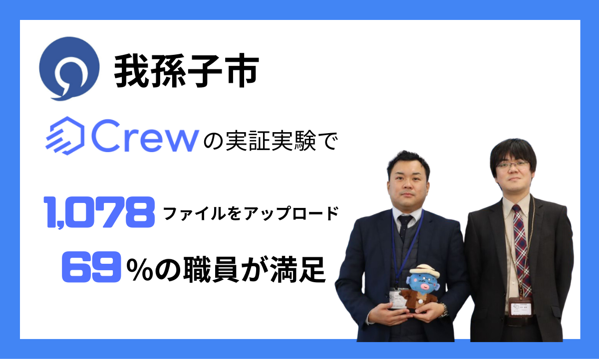 実証実験に参加した我孫子市職員の69%が「Crewによって業務の効率が上がる」と回答した。外部むけの通知文作成や情報検索の業務に展開できると期待されている。