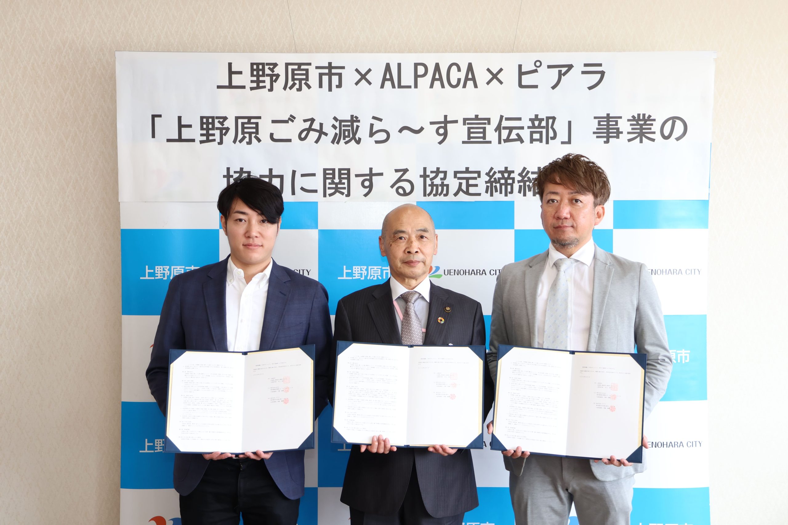 2024年4月1日、山梨県上野原市は、株式会社ALPACAおよび株式会社ピアラの2社と、ゴミ減量対策事業についての協定を締結した。また、この合意に基づいて、上野原市ではALPACAの生ゴミ乾燥器「loofen」を利用した事業が実施される。