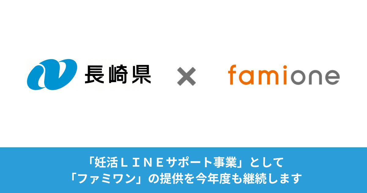 長崎県は、県内で実施している「妊活LINEサポート事業」について、今年度も事業継続をすると発表した。本事業は株式会社ファミワンが提供するサービス「famione(ファミワン)」を活用したもので、長崎県はfamioneを2021年から導入している。