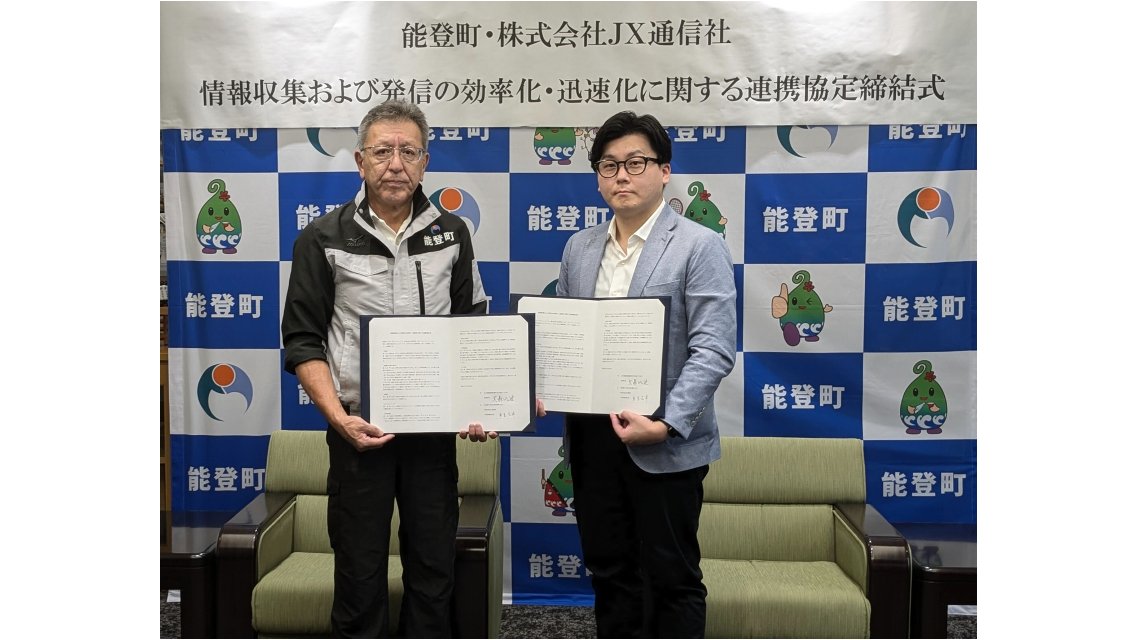 石川県能登町は、防災DX推進に取り組む株式会社JX通信社と「情報収集・発信の効率化と迅速化に関する連携協定」を締結した。