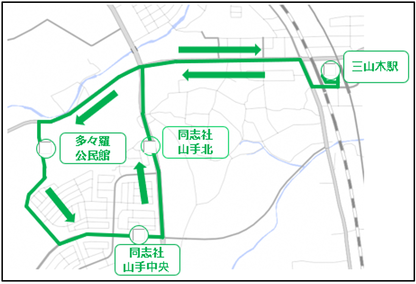 三山木駅④のりば → 多々羅公民館 → 同志社山手中央(※1) → 同志社山手北(※1) → 三山木駅