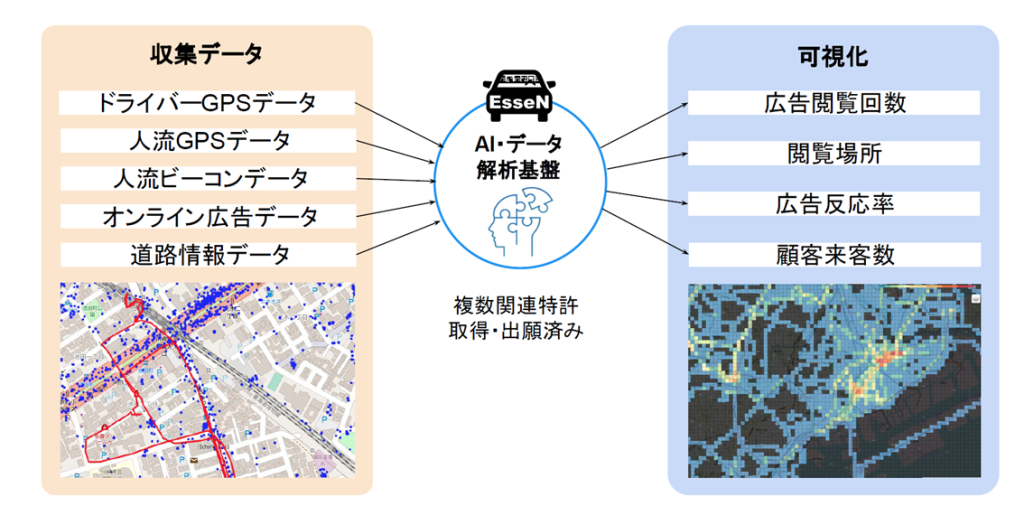 都城市では、先端技術を活用して地域課題を解決し、チャレンジ精神あふれる企業の成長を支援する「都城市DXチャレンジプロジェクト」の一環として、新しい車両広告「WithDrive」を活用したミートツーリズムの認知拡大に取り組みました。ミートツーリズムとは、都城市が誇る肉と焼酎を市外から訪れる観光客に堪能してもらうための観光誘致施策で、オンライントラベルエージェント等の宿泊予約サイト(じゃらんnet、楽天トラベルなど)又は市内宿泊施設の自社宿泊予約サイトを活用し、都城市へ宿泊する観光客に対して肉や焼酎を楽しんでいただけるみやこんじょミート券(飲食券)を配付する「ミート券自事業」をはじめ、観光消費や市外輸出の拡大により地域における消費を喚起・下支えすることを目的とした事業を展開しています。このプロジェクトは、大阪エリアでのミートツーリズム認知度向上を通じて、地域経済の活性化を目指すものです。WithDriveとは、協力企業の車両に広告を設置する新しいビジネスモデルで、GPSとビーコンを組み合わせた独自の計測システムを活用し、位置や速度などの車両情報に加え、車両周辺の人流データや接触後行動などの様々なデータを収集・分析することで、より精緻な効果検証を可能にしています。このソリューションは、神奈川県川崎市に本社があるスタートアップである株式会社Essenが提供するもので、広告主、車両提供者、利用者すべてにメリットがあるものとして、例えば、プロサッカーチームのPRやオープンする商業施設の周知に活用されてきました。主要道路を走行するため高い露出効率を誇り、同じエリアを繰り返し走行することで記憶に残りやすいという特長があります。また、GPSデータとの連携により広告接触の効率性や集客効果を可視化できる点が革新的です。これまで効果測定が難しかったアナログ広告の世界に、データ分析による効果把握という新たな可能性をもたらしています。