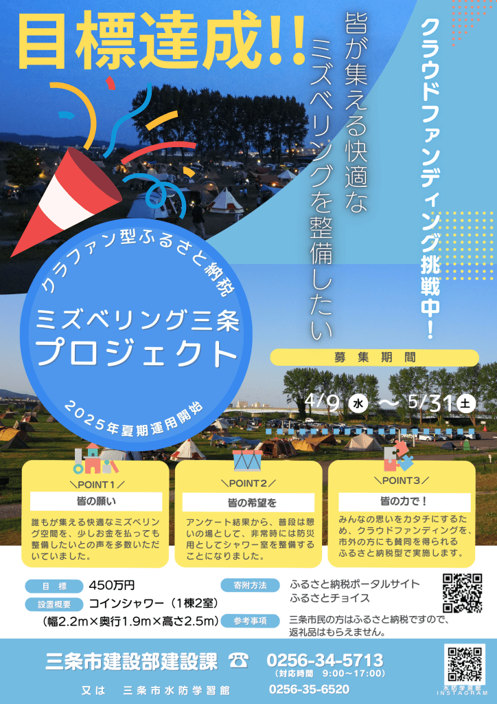 信濃川の川岸に市民から要望の多かった「シャワー室」を作るプロジェクトを