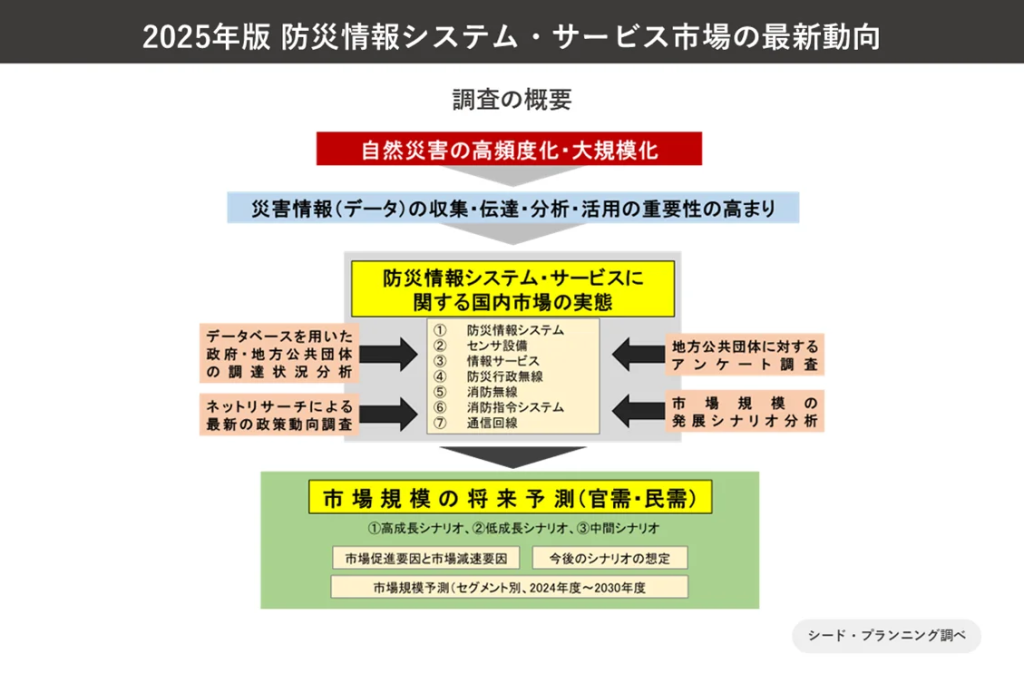 シード・プランニングは、国内の防災情報システム・サービス市場について、官公庁による調達状況、地方公共団体の関心や抱える課題、最新の政策等の実態を調査し、その結果を公開した。
