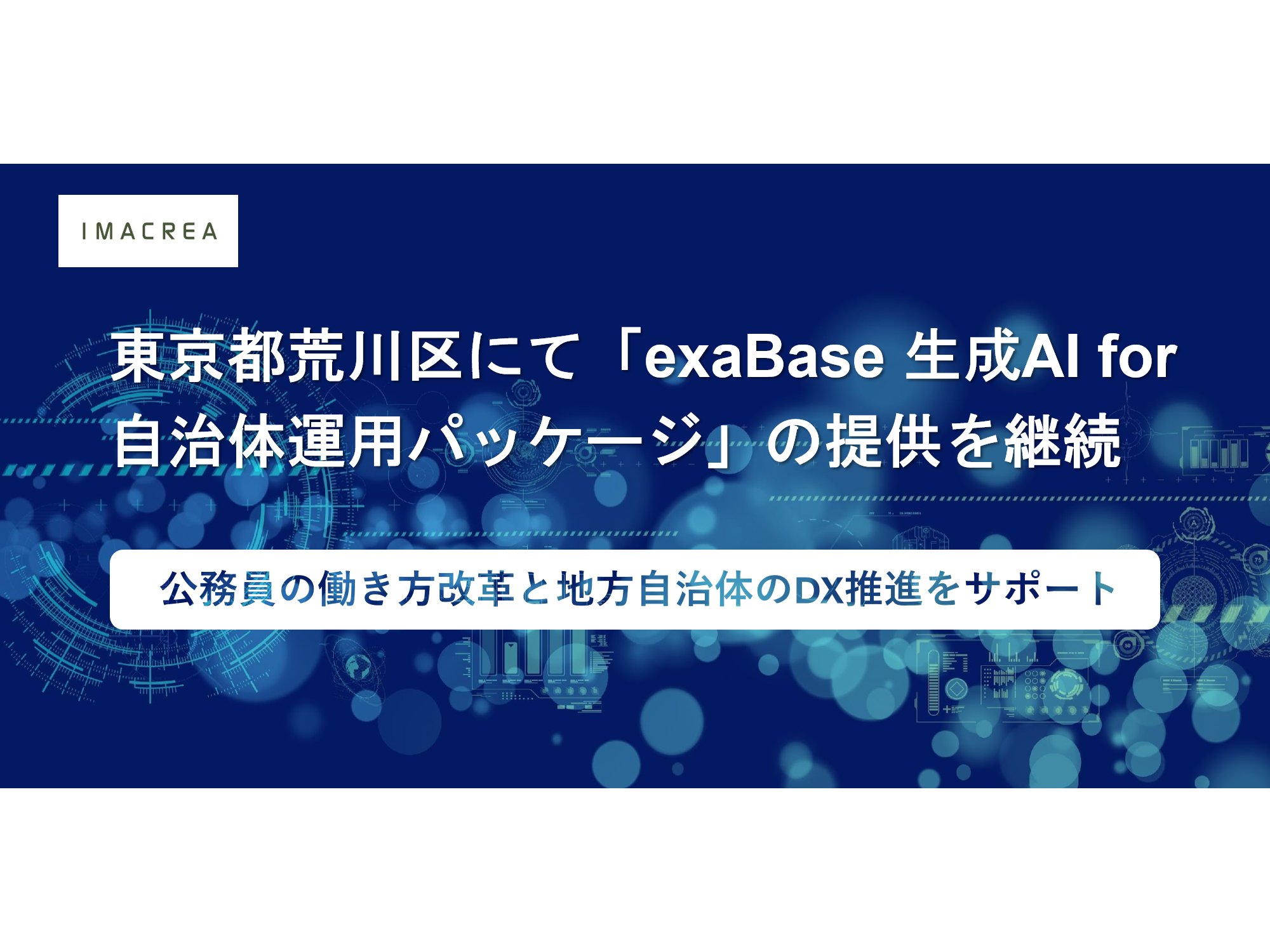 東京都荒川区、「exaBase 生成AI for 自治体運用パッケージ」の活用を継続[ニュース]