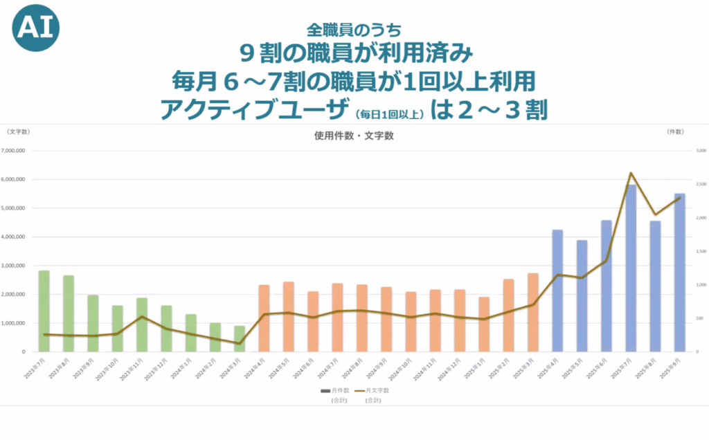 エバンジェリストは生成AIに対する意識も高いので、最新の生成AIトレンドレポートも渡すようにしている。人数は2024年4月の開始時8名から、2025年10月時点で15名まで増加した。役職は主事から課長まで、部署は幅広く点在しているのだという。数年後には全職員の2から3割まで増やしたい意向だ。