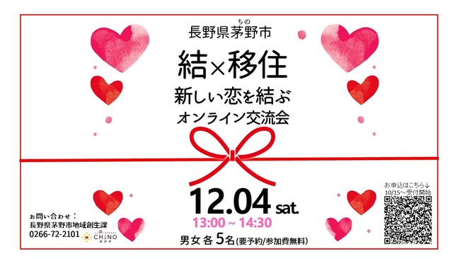 長野県茅野市は12月4日、オンラインで恋活イベントを開催を開催する。