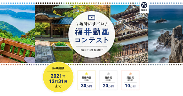 動画コンテストでは、福井県の魅力を表現したYouTube動画を2021年10月26日から12月31日まで募集する。優秀な作品には金一封とともに、副賞として福井の名産品をプレゼントする。