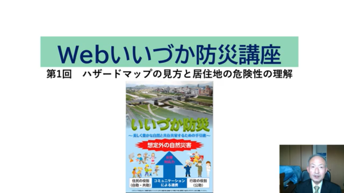 「いいづかWeb防災講座」は、水害から命を守るために最小限必要な知識を、10分前後の4本の動画にまとめたものとなる。講師は吉田英紀防災危機管理監が担当。自分の居る場所(居住地)の災害リスクをハザードマップで知るとともに、リスクに応じて、どのような気象情報あるいは河川情報が出た時に「自分は逃げ始めるのか」のタイミングを説明している