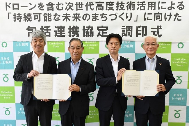 北海道十勝地方に位置する上士幌町は、セイノーホールディングス株式会社、株式会社電通、株式会社エアロネクストと、全国自治体のロールモデルとなることを目的とした包括連携協定を2021年8月11日に締結した。