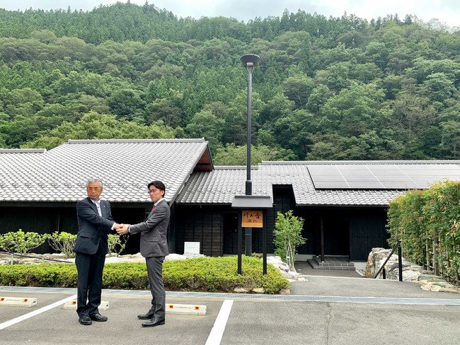 今回の協定の第一弾として、神流町の宿泊施設「古民家の宿 川の音」に太陽光発電設備と、Tesla社製の蓄電池「Powerwall」を設置し、地域の脱炭素化および施設のレジリエンス強化を行なう。