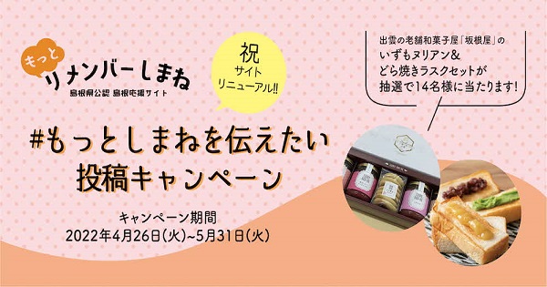 島根県は、島根応援サイト「もっとリメンバーしまね」のリニューアルを記念し、「もっとしまねを伝えたい」投稿キャンペーンを実施する。